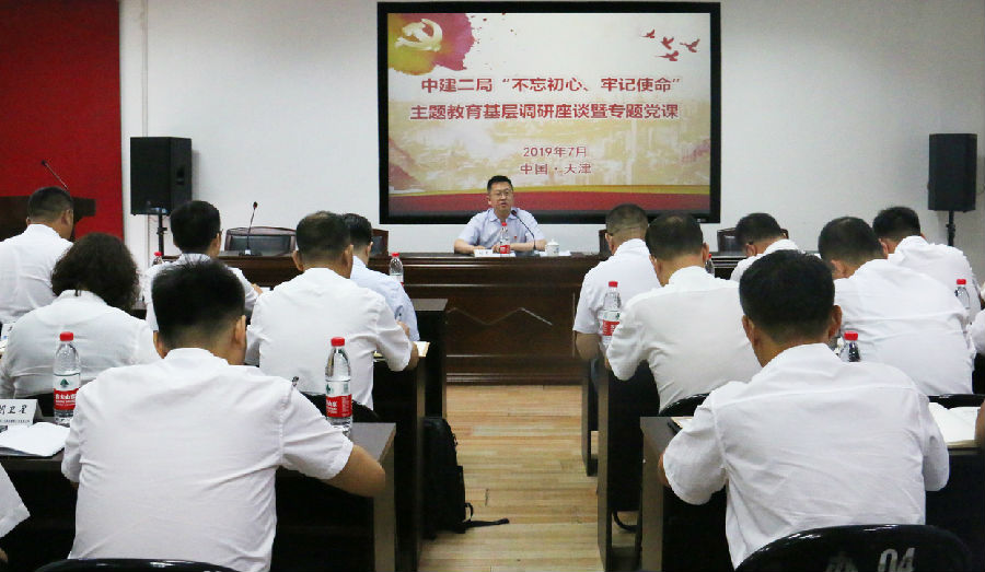 隨后,劉冬結合“不忘初心、牢記使命”主題教育開展以來自身學習體會和基層調研情況,為參會人員講授了一堂“不忘初心、牢記使命”主題教育專題黨課。劉冬從四方面講授黨課:一是以高度的思想自覺堅守初心,深入學習貫徹習近平新時代中國特色社會主義思想;二是以高度的政治自覺勇擔使命,努力開創我局“雙高”發展新局面;三是以高度的行動自覺查找差距,推動主題教育攻堅克難有成果;四是以高度的使命責任狠抓落實,全面推進我局“安全生產、質量管控、環境管理整治提升”見成效。黨課最后,劉冬結合調研主題,對四公司工作提出兩點要求:一是黨委在主題教育中要履行主體責任;二是廣大黨員干部要發揮模范帶頭作用。