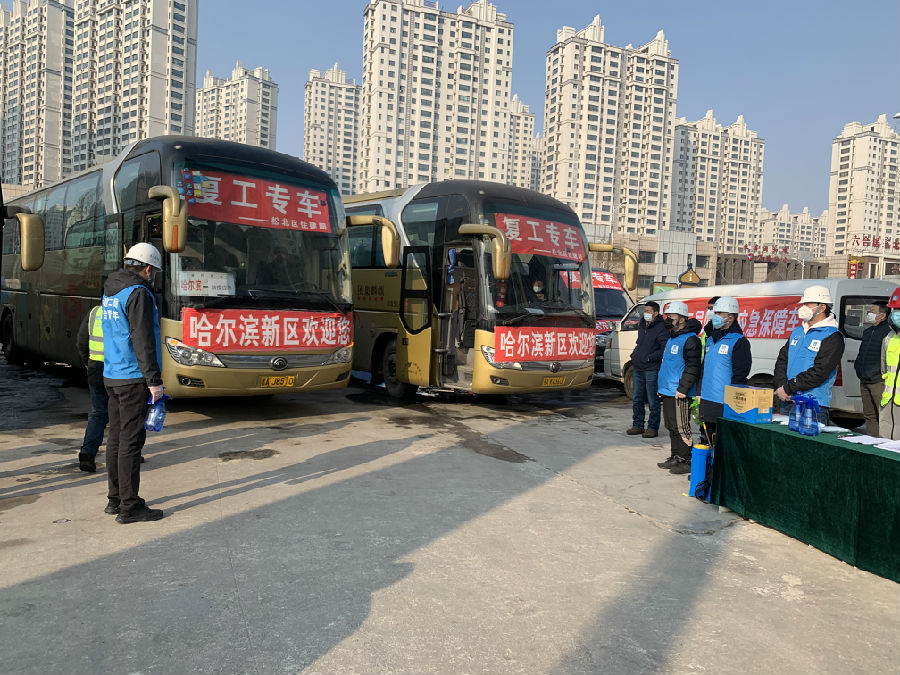 為保證農(nóng)民工盡快安全復(fù)工復(fù)產(chǎn),公司萬達(dá)配建住宅1B項(xiàng)目在當(dāng)?shù)卣С窒?,“點(diǎn)對點(diǎn)”包車接運(yùn)農(nóng)民工返崗復(fù)工,目前,首批61名工人已乘專車安全抵達(dá)項(xiàng)目。據(jù)悉,為保證安全,車輛在出發(fā)前要進(jìn)行全車消毒,并隨車配備體溫計(jì)、口罩、消毒紙巾、免洗洗手液、一次性手套等防疫物資。途中,乘車人員分散落座,項(xiàng)目工作人員隨車接運(yùn),做好車途中后勤保障工作,確保人員安全抵達(dá)。