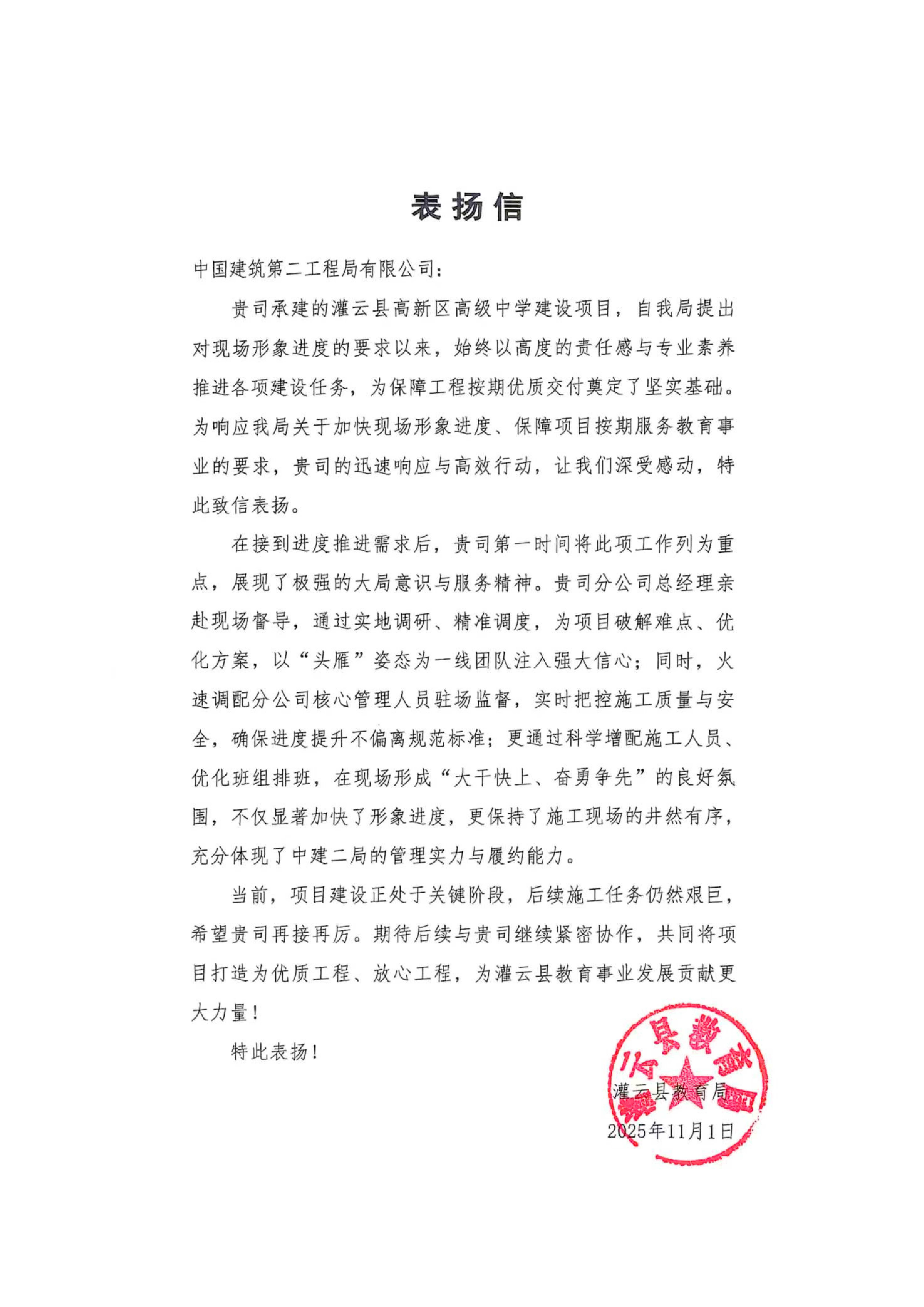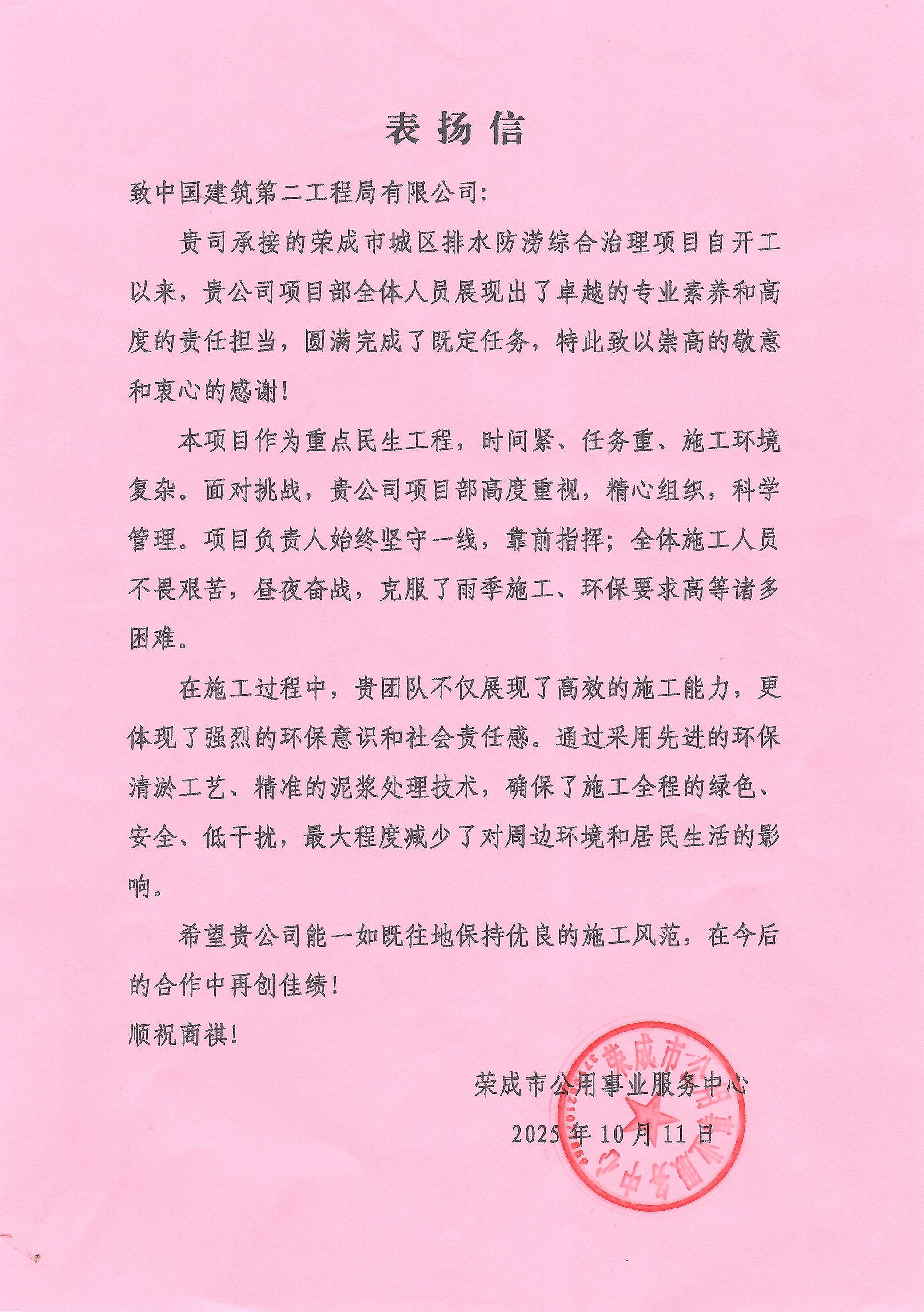 一起看看部分項目的表揚信吧
